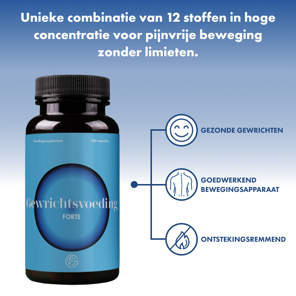 De meeste van ons denken bij botten en gewrichten waarschijnlijk aan het skelet uit het biologielokaal. 🩻 Maar het menselijk lichaam bestaat uit allerlei andere onderdelen, bindweefsels en weefsels die van belang zijn voor het goed functioneren van gewrichten. Deze moeten, net als de botten en gewrichten zelf, gevoed en aangevuld worden met belangrijke stoffen die ze niet kunnen missen en waar ze baat bij hebben. 💚